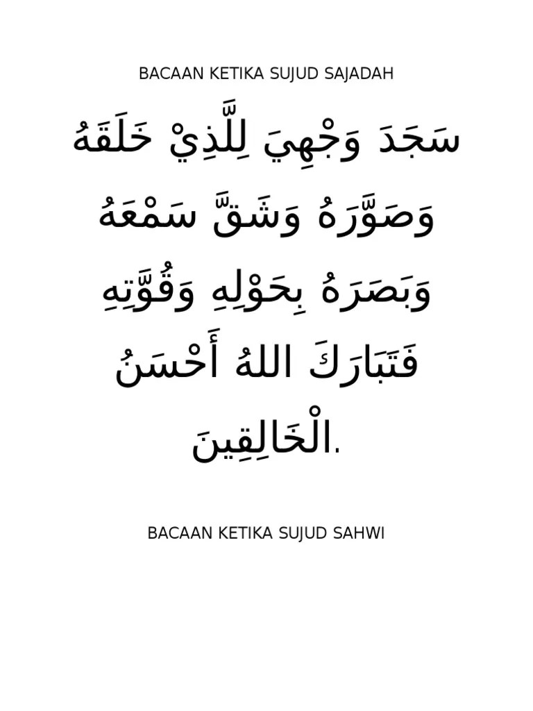 Bacaan tasbih ketika sujud sajadah ialah:. Telah sujud wajahku kepada yang telah menciptanya, yang telah memberi rupa baginya dan telah memberi pendengaran dan penglihatan dengan kehendaknya dan dengan . Setiap mlm , mengikut sunnah nabi saw tidak akan tidur melainkan setelah membaca surah al mulk dan surah as sajdah . Subscribe untuk melihat video lain yang seru dan menarik. Sajada wajhiya lil ladzī khalaqahū wa shawwarahū wa syaqqa sam'ahū wa basharahū bi haulihī wa quwwatihī fa . Sujud sajadah ini juga biasa .